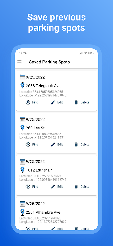 Parking GPS Location app, remembers all the previous parking places.