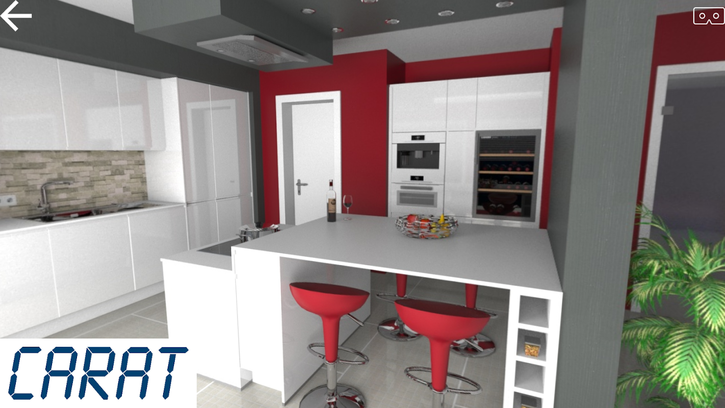 By asking your kitchen designer to send you a rendered panorama image created in CARAT you can use the CaratView app to see the design proposal while standing in your own home in your actual kitchen space. You can move around the room and experience how your new kitchen will look and feel as you tilt and rotate your device to show the sink area, your free standing island, your dining area or the open plan family room you hope to have when your building project is complete