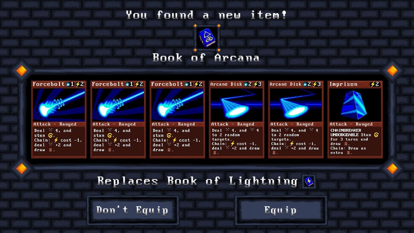 Unlock new items by defeating mighty bosses. There are dozens of different pieces of equipment and items for each class to further customize your heroes; granting them new cards and abilities.
