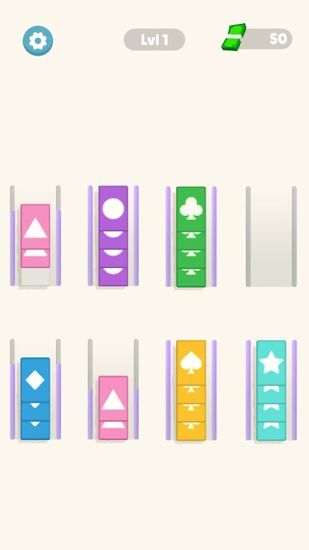 Try to sort the colored cards in the slots until all cards with the same color stay in the same slot.