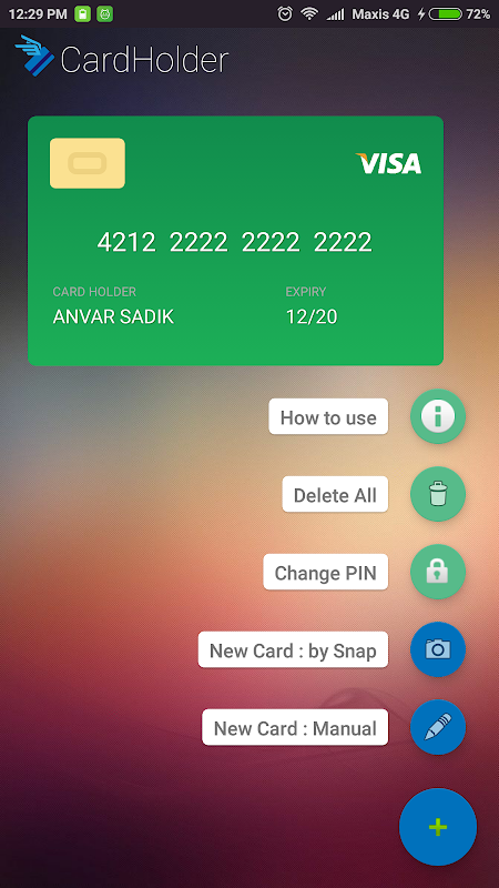 Cardholder helps you to store your debit/credit card details safely and securely and can be used as card's soft copy. All details are saved completely locally in secure storage. Access to this app is restricted using PIN and finger print authentication.