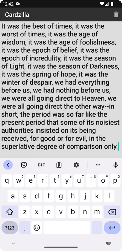 CARDZILLA is built for speed and ease of use. Just start typing as soon a blank card appears. Text will resize as you type, reducing the need to scroll!