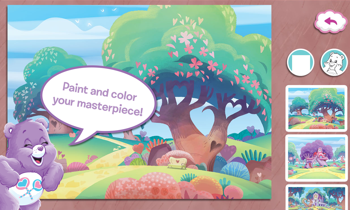 Care Bears™ Fun to Learn, in which children three to seven can enjoy and learn while playing games and stimulating education. The Fun to Learn app offers over 100 interactive games that enhance conception, perception, math, memory, and creativity skills for children alongside the widely recognized and beloved Care Bears.