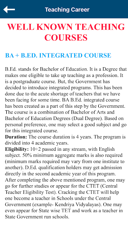 This app will guide you about the regular courses, offbeat courses as well as trending courses and job prospects related to the selected course and also top institutes offering those courses & type of the jobs you get in the related field.
