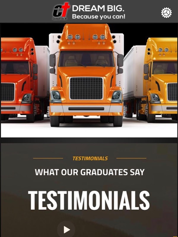 Career Tech CDL allows potential students and current students the opportunity to excel through the on-boarding process and the school. The Career Tech CDL app allows users the ability to stay on task, access updated information and maximize their abilities for completing the program ensuring each students success with any carrier they work for.