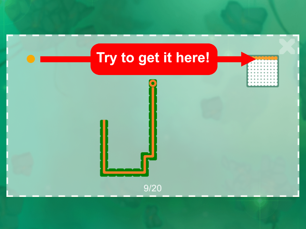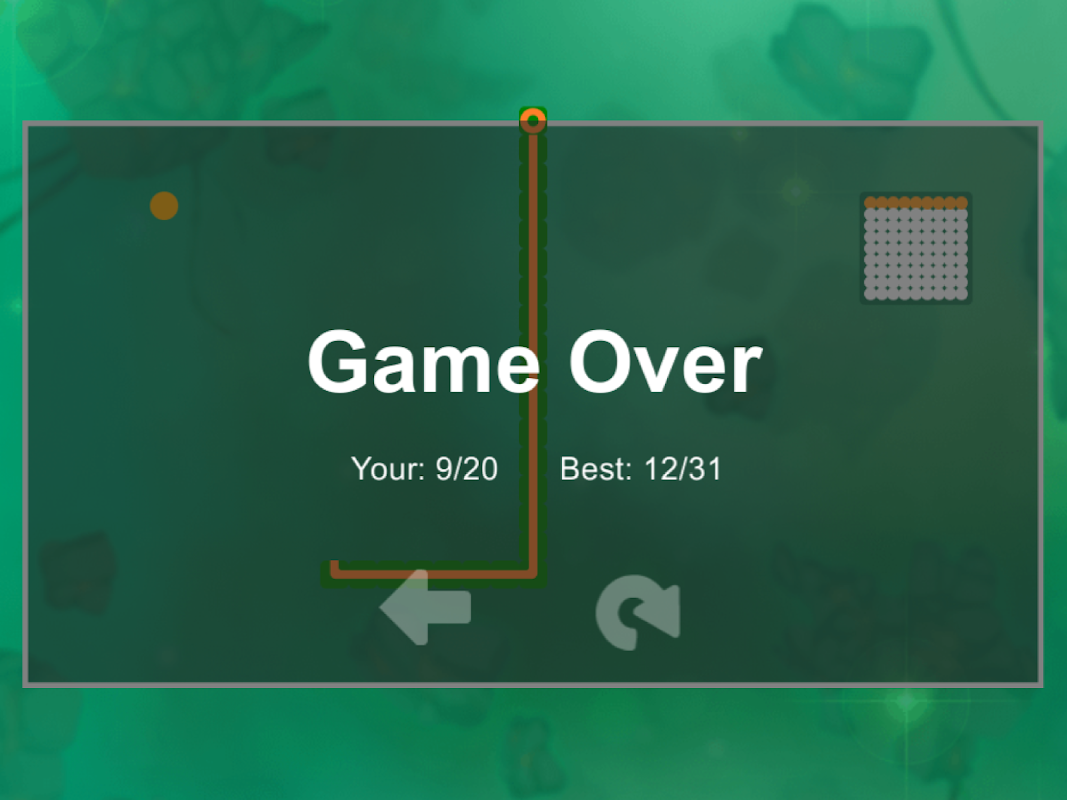 The goal of the game is to guide the snake to bring the apple home (to make the apple appear on the white square). How can it be done? Well, I left it as a simple riddle for you. Just watch carefully where the next apple will appear.
