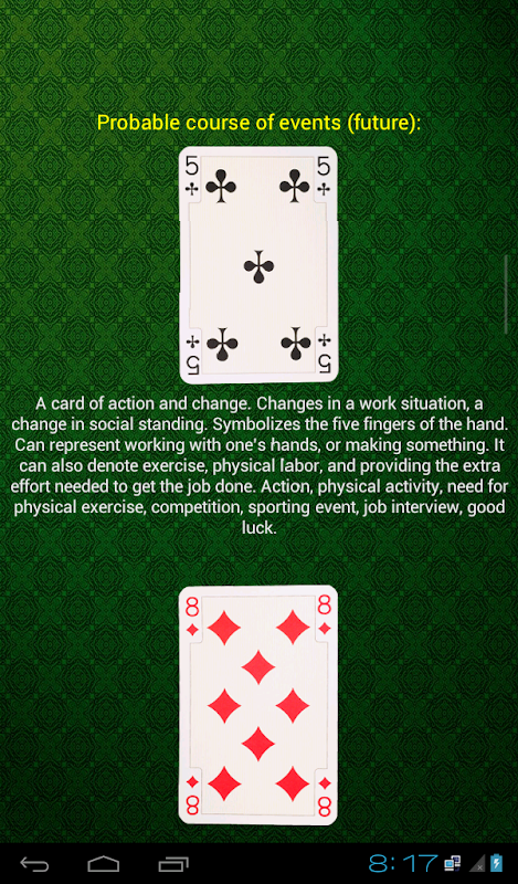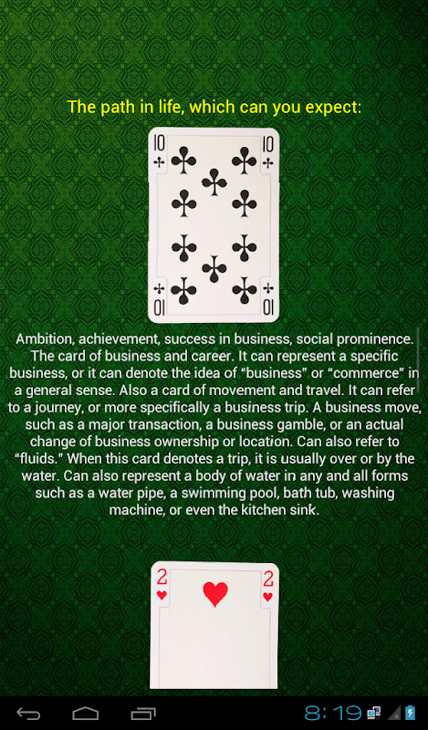 Divination will help You with advice for the current day\week\month; talk about the current situation in Your life; tell about the relationship with the partner; sees the past, present and future.