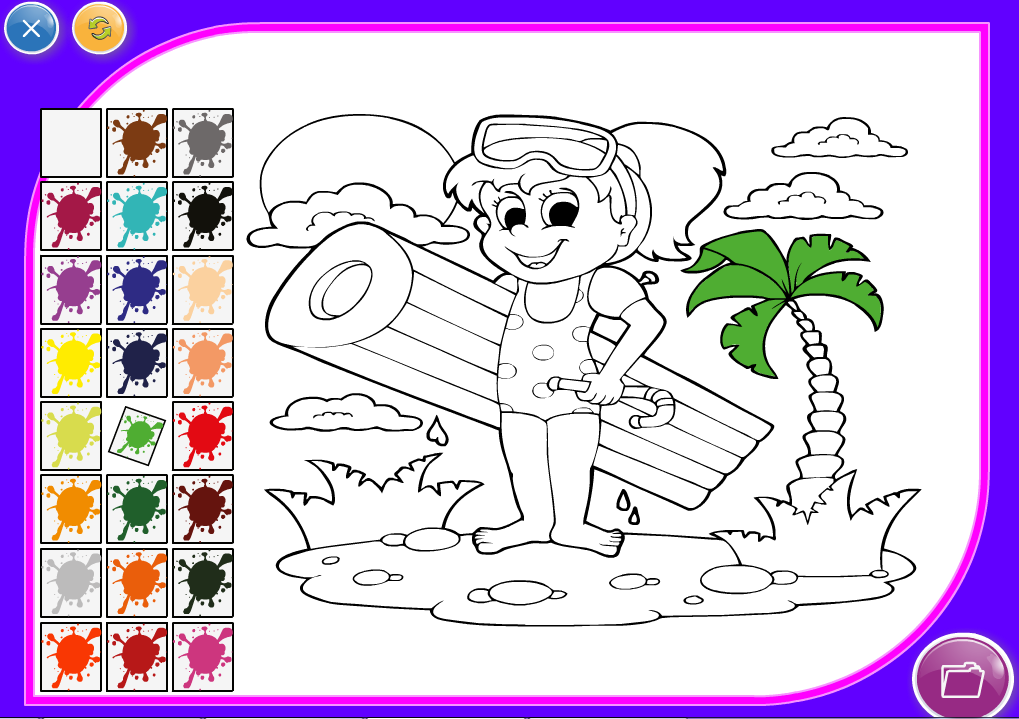 Is designed for children free coloring game. In this game, your children can have a good time and keep you entertained with them in this game. This game can easily play over the phone or tablet. This game consists of 12 episodes. Select the desired section you can start painting.