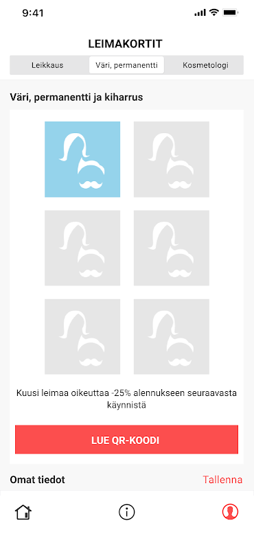 The Carusell app is a mobile app for regular customers of the Carusell Hair Salon to facilitate transactions with the hairdresser. It allows Carusell customers to collect benefit stamps from their visits on a service-by-service basis. The app reminds the customer when the allotted time is approaching. Customers also have access to Carusell news and bulletins through the app.
