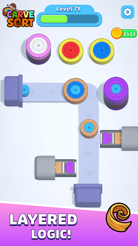 Welcome to Carve Sort, the ultimate multi-layered puzzle experience where carving meets color-matching mastery! Strategically place wooden trunks on the conveyor, match cutter colors to outer wood layers, and reveal hidden surprises as you slice deeper. Every move counts—think ahead, manage your capacity, and unlock the secrets buried beneath the bark.
