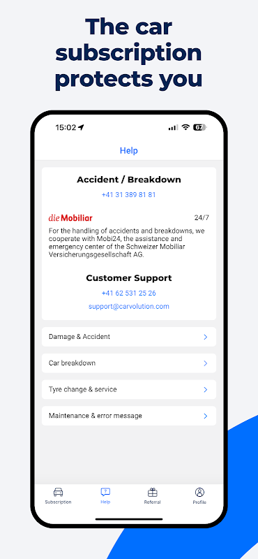 You'll also find details of your insurance, information on tyre changes and services, and an overview of all your bills. If you want to report a claim, you can also do this conveniently via the app, without much hassle.