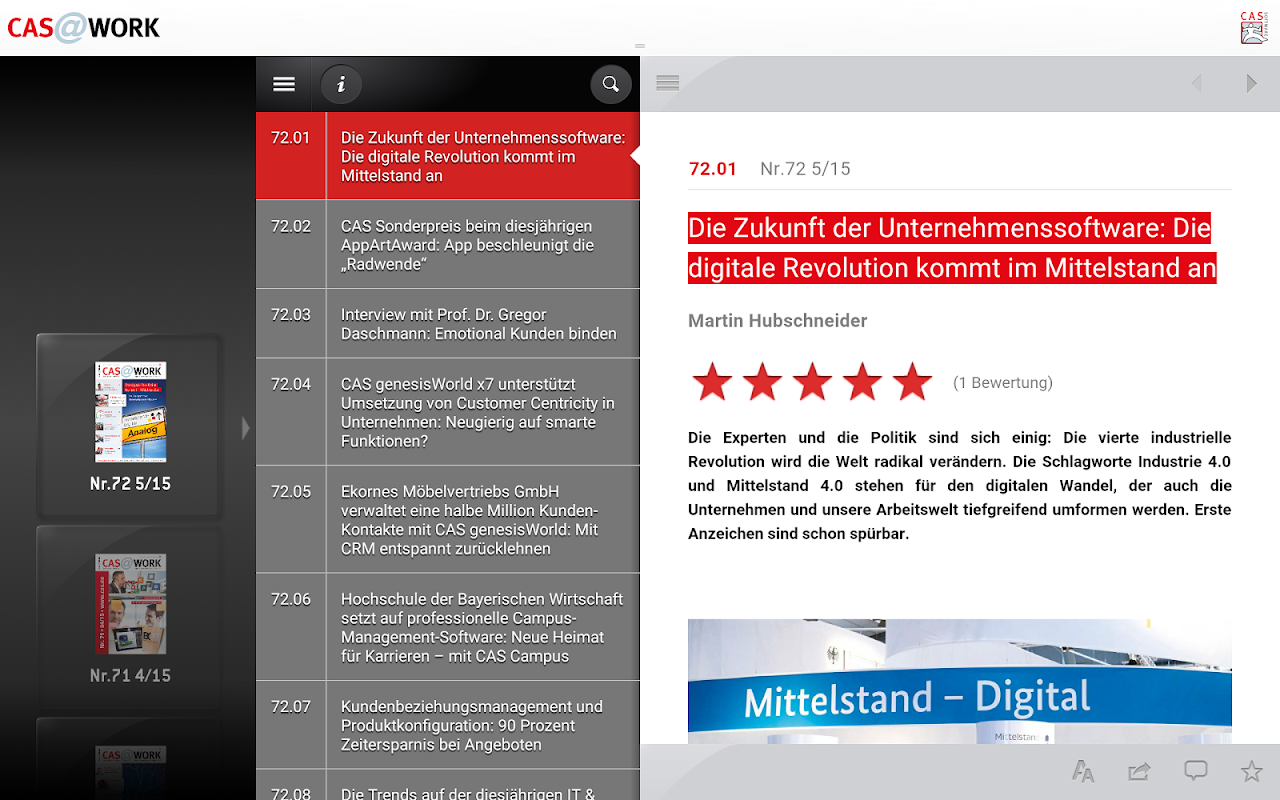 The CAS @ WORK magazine reports on the tips & trends of CAS Software AG.