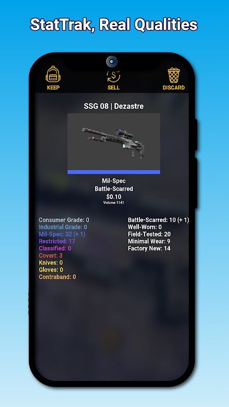 Experience the excitement of discovering rare skins and StatTrak gear.