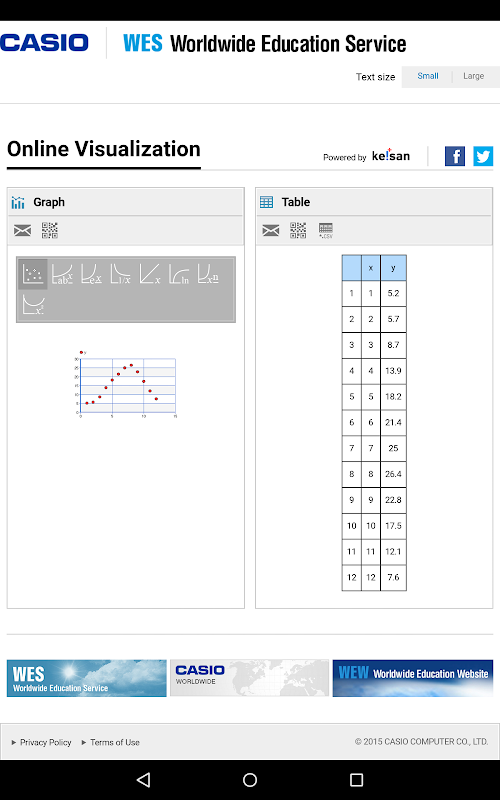 The app is equipped with a graph display function that makes numbers visually easier to understand and a function for sharing group work on a website. It is fitted with a newly developed QR Code scanner engine that has been optimized for the ClassWiz series. It also supports multiple QR Codes, allowing you to send large volumes of data, such as numerical tables.