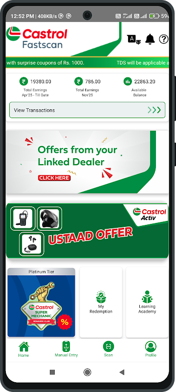 Castrol Fast Scan App is for usage by Castrol dealers and mechanics who buy Castrol products. Castrol Fast Scan App helps scan and validate QR codes on redeemable coupons in selected packs of Castrol products. These validated coupons would result in instant credit of the coupon value to the bank account updated by the user on the Castrol Fast Scan App.