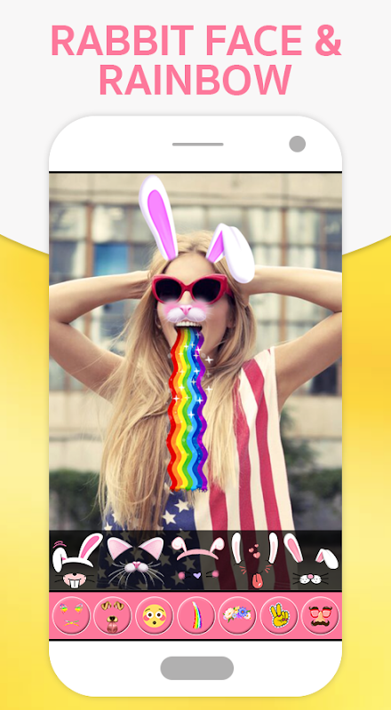 With this funny face app, you can make a creative selfie using face stickers in your photo! You will get a great collection of selfie stickers such as animal face filters, face effects, face hairstyle, sunglasses, head accessories etc.
