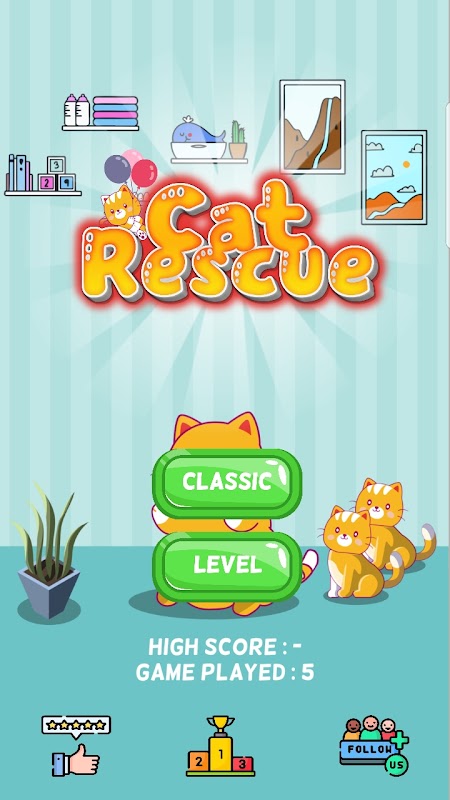 The Cat Rescue is completely free and suitable for all ages.Colorful and interesting game styles await you in this game. You can play online or offline. Just aim the bubble and save the kitten!