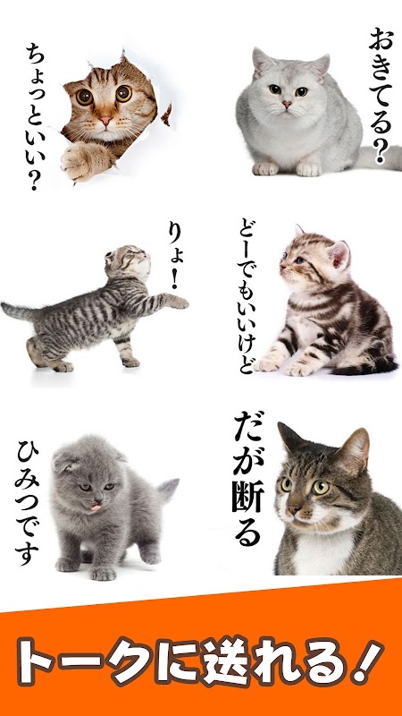 These free cat stamps are easy to send to chats, social media, chat apps, and more. They feature cute cat photos. The app's unique "categories" are incredibly convenient. A huge selection of cute, cool, and ugly-cute cat stamps are available. The volume is fast and easy to use.