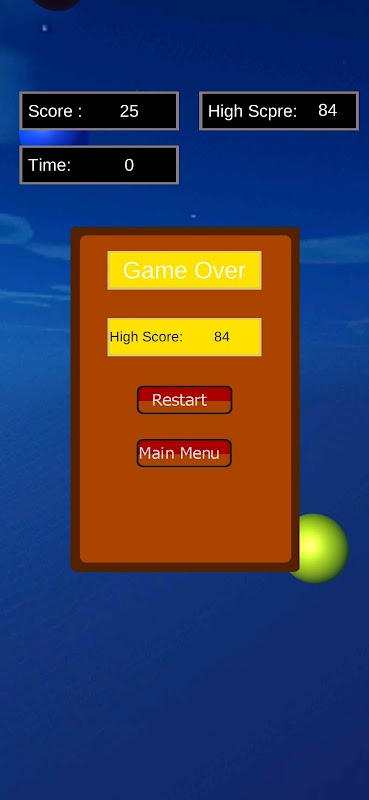 You start with a 1 minute timer, increase your time by catching balls and increasing your score, miss a ball and your timer goes down. miss to many and your game ends. Can you beat your last high score?