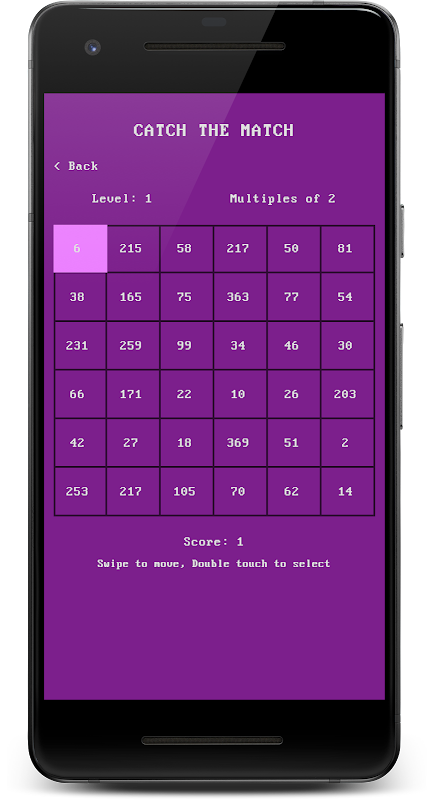 Double touch to select, then score will increased by 2 and selected number will change as smile image. In case answer is wrong then unsatisfy image will display and score will be decreased by 1.