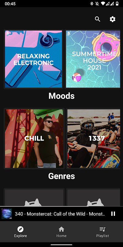 - Explore page with genre playlists