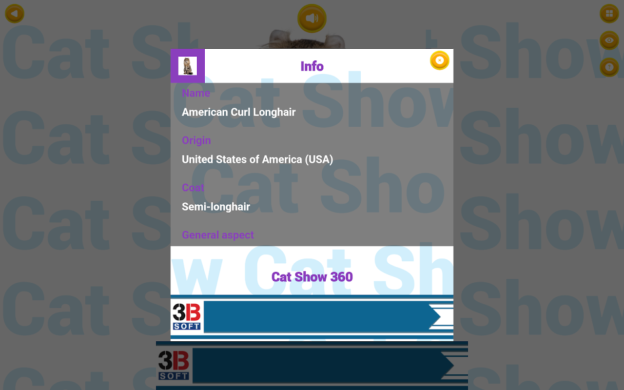 Welcome to Cat Show 360, the app designed for young cat enthusiasts! Embark on a delightful journey through the enchanting world of our feline friends with interactive features that entertain and educate.