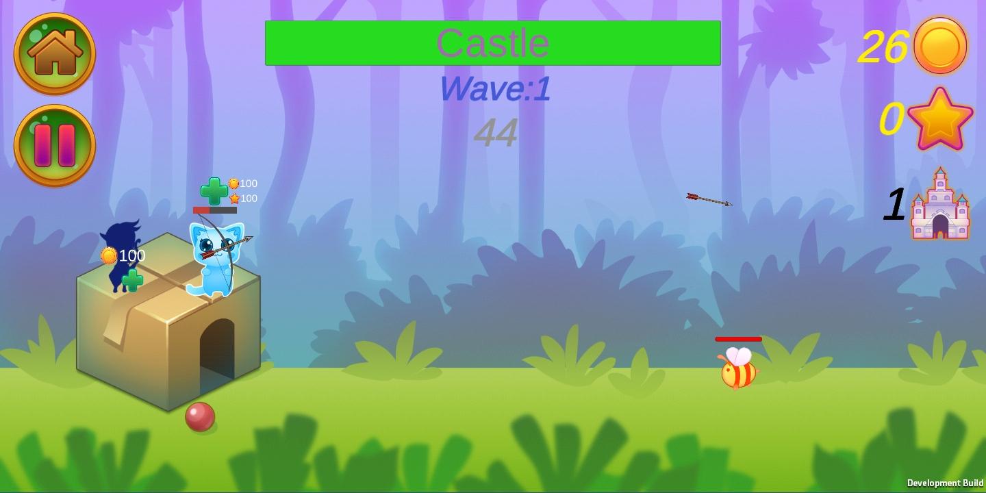 Défendre le château c'est tout ce que vous devez savoir pour commencer à jouer à l'addictif Cats Castle! Relevez le défi et voyez combien de temps vous pouvez durer dans un stage, établissez un meilleur score. Un large choix des chats sont à votre disposition pour vous aider à éliminer plus d'ennemies.