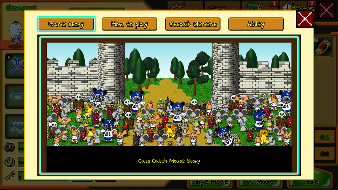 A game where a cat throws a weapon and catches a mouse.