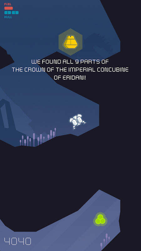 Collect luminum crystals, the universal currency in this part of the galaxy, and use them to buy a bigger fuel tank for your ship. Or reinforced hull armor, better shields – *anything* will increase your odds for success in a place like this. But there's more to discover: You can find pieces of alien relics that are scattered throughout the caves. Collect all parts of a relic to add it to your collection of precious artifacts. Now that's something to brag about in the orbit terminal's bar!