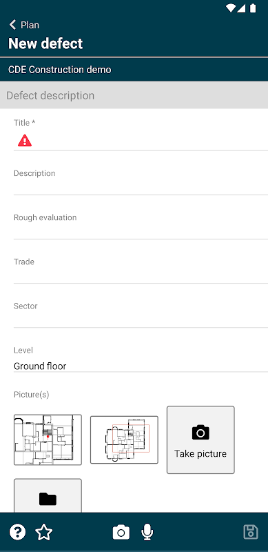 • Capture relevant data like Trade, Sector, Description and more, plus photos and marked-up drawings