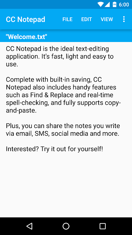 Furthermore, CC Notepad has built-in support for reading and editing text files (.txt) opened directly from your Android device. You can even choose for it to receive text you share from another app - handy for saving things like text messages. Just let CC Notepad load the text and then open the menu and tap Save.