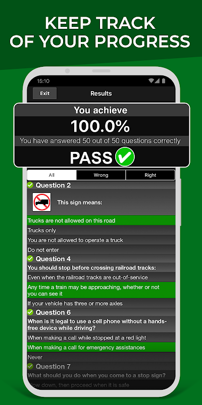 - Track and monitor your progress. Analyse your performance and find out when you have reached test standard.