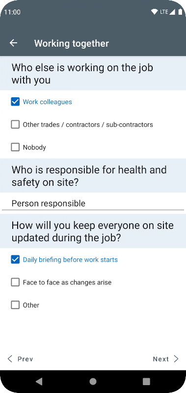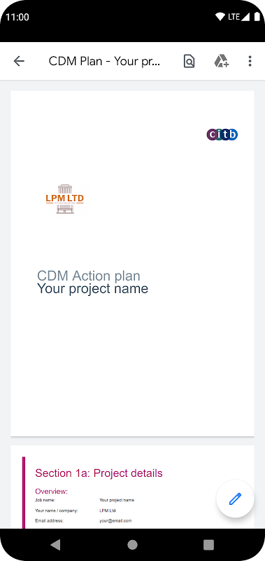 The app asks you questions about what you will be doing and the nature of the work. Most of the questions are answered with simple tick-boxes, allowing you to complete the whole process in less than 5 minutes. An action plan is then generated that can be viewed instantly on your device or can be emailed to whoever needs it. This is the Construction Phase Plan for your job and required under CDM 2015. The plan includes: