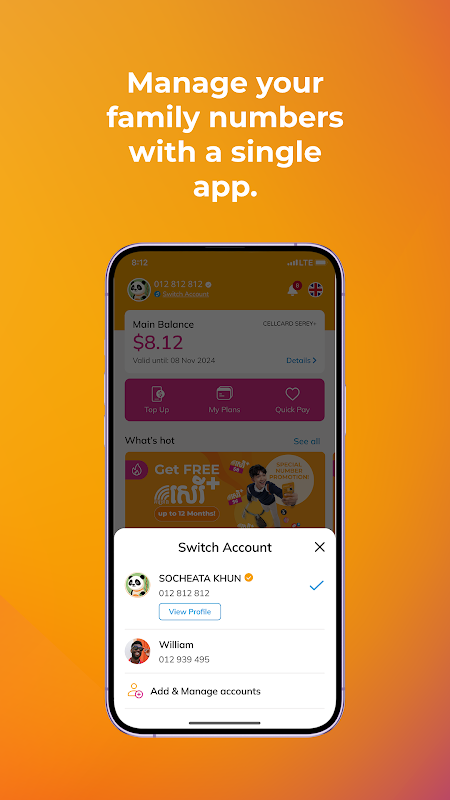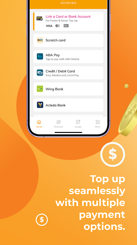 You can also Top-Up online. Simply link your payment account. We’re partnered with ABA Pay, Wing, Acleda, Alipay, WeChat Pay, Visa, Mastercard and UnionPay.
