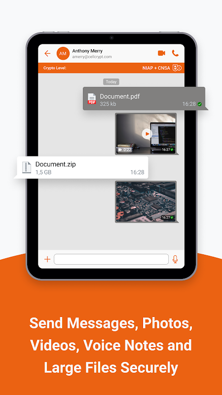 Need to send a large file (500MB+) securely? No Problem. Cellcrypt Federal delivers military-grade encryption for private messaging, facilitating the seamless and secure exchange of files and ideas.