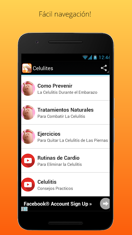 Celulites es la App que te ayudará eliminar la celulitis de manera natural con unos simples consejos que toda personas puede seguir. La App cuenta con información valiosa para deshacerse de la piel de naranja en poco tiempo. Descarga Celulites y podrás disfrutar de varios consejos, dietas, ejercicios, recetas de cremas y tratamientos efectivos con una interface amigable y fácil de navegar.
