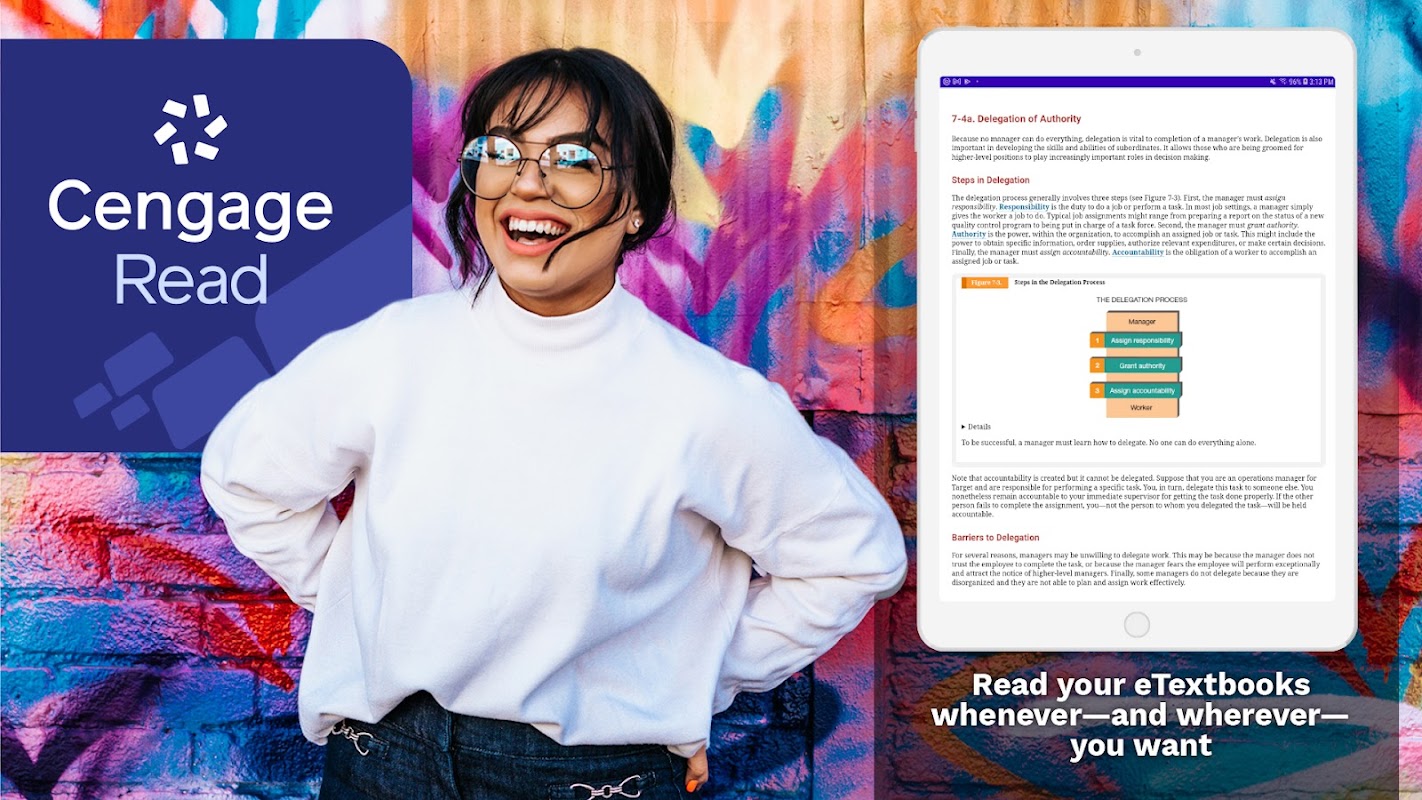 Read your eTextbook and study on the go with the Cengage Read app. Cengage Read lets students study whenever – and wherever – they want with online and offline mobile access.