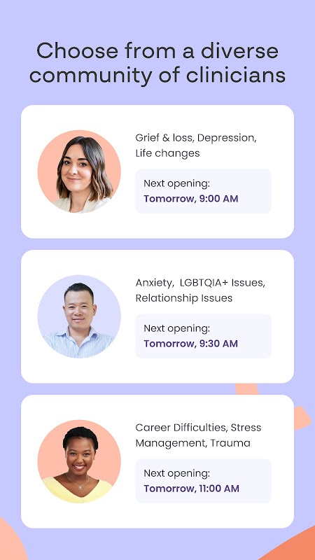 · Review a panel of doctors and therapists who are licensed and credentialed in your state and available to provide care directly to you