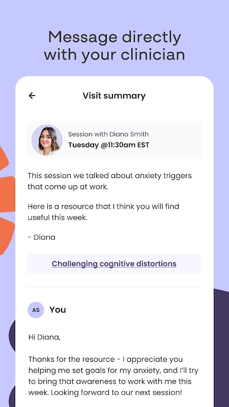 Cerebral’s national network of licensed and credentialed mental health care doctors and therapists offer one-on-one personalized professional mental health care that will get you feeling better. Working directly with your doctors and therapists can help you overcome your anxiety, depression, insomnia, and more, managing your care all in one place. Cerebral’s app allows you to select your treating doctor and/or therapist, schedule your visits, and have a direct one-on-one telehealth visit with your selected healthcare professional.
