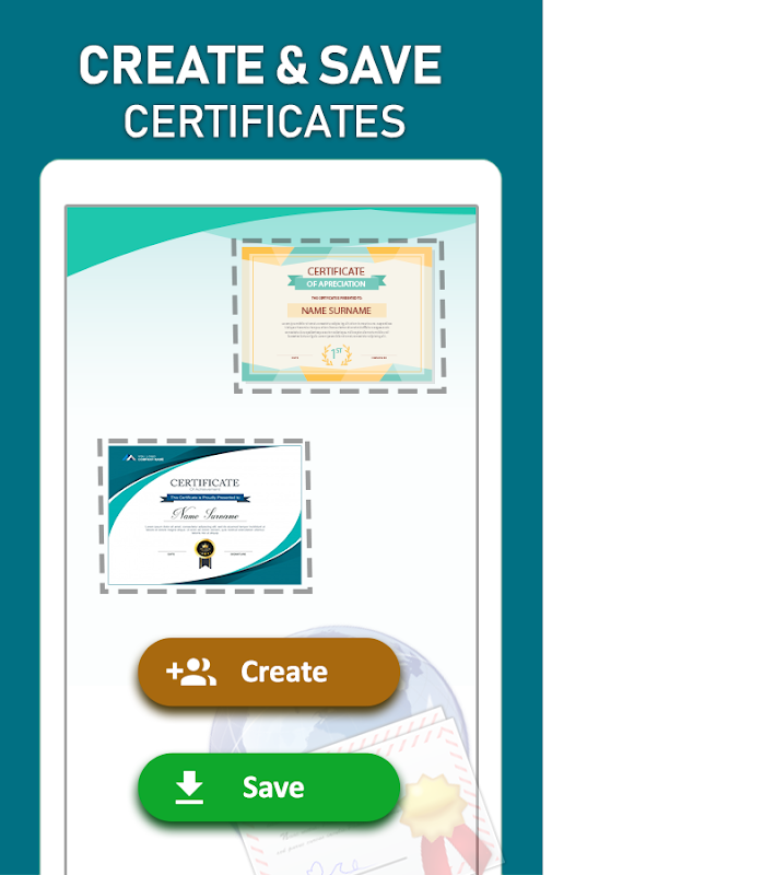 Design or create certificates as you want with different text styles & resizing of text you type, Certificate maker or creator is free hand application, just select certificate template of your choice & write text of your choice on that template. Certificate maker app helps in creating certificates & also helpful in creating professional certificates for an organization.