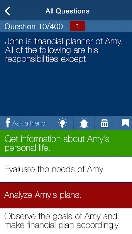 CFP practice exam simulator is a free cfp exam prep app, study guide and cfp review for Certified Financial Planner examination. It is a complete CFP Review and study guide to prepare you for actual cfp exam by taking CFP practice exam , studying CFP flashcards and mock test. This application is designed to take CFP practice exam questions on the go without internet on your mobile device. CFP practice exam prep app record you performance, gives a comprehensive cfp review and highlight the weaker area to let you focus on them while studying for Cfp exam questions. All questions are formulated by experts closer to the actual Cfp exam questions.