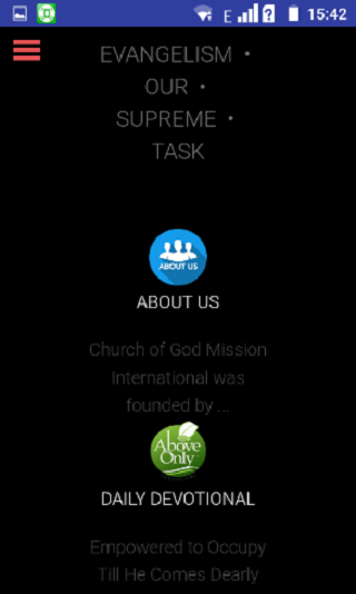 This is the official app of Church of God Mission International. Contains all information that may be needed and links to other arms of the ministry. Still at the development stage, ideas and feedback are all welcome.