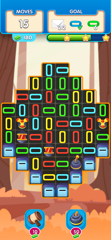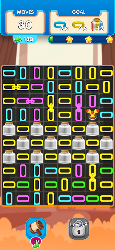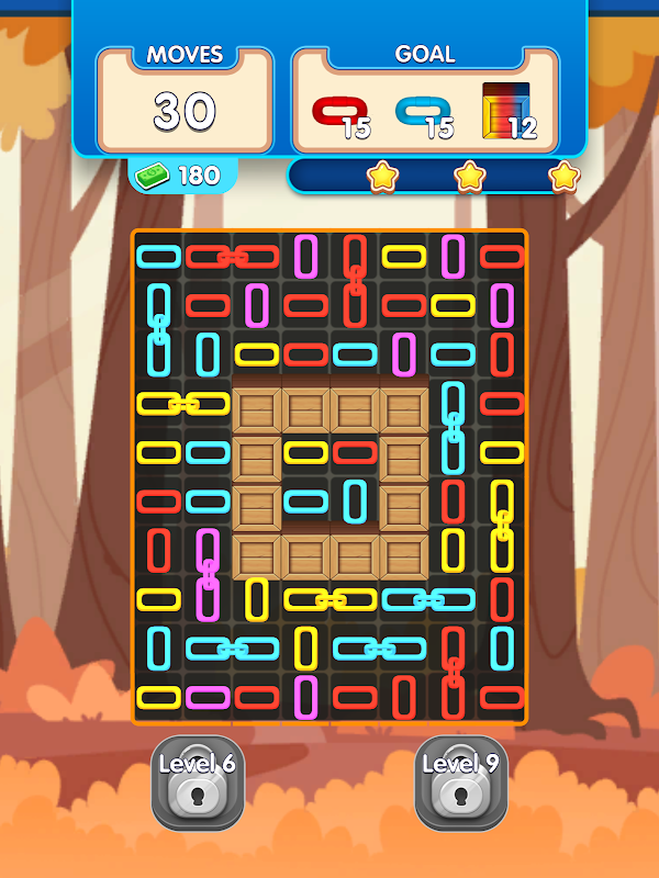 Reach the desired goal by combining chains of the same color. Break more chains by combining four and five chains.
