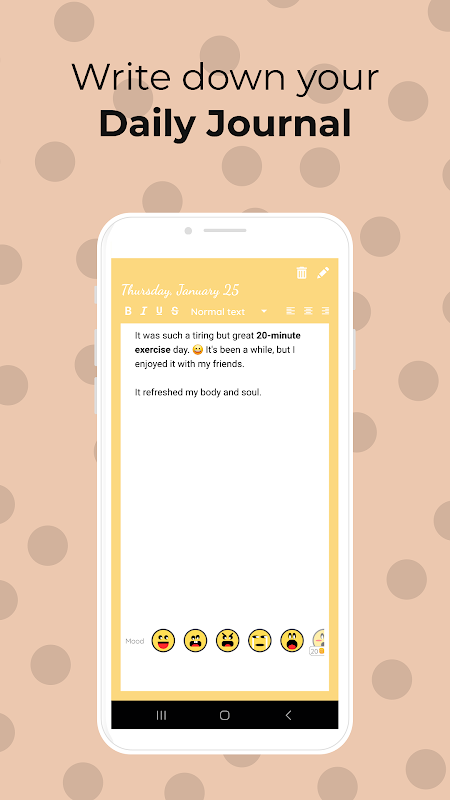 Integrating a journal feature provides users with a platform to reflect on their challenges and emotions. Journaling can be therapeutic, aiding in stress relief and self-discovery.