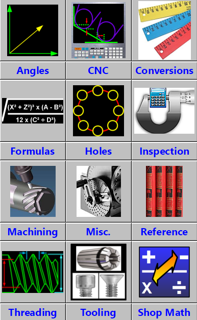 Web Machinist Mobile Pro App has many cnc programming calculators for CNC Machinists, Programmers and QC Inspectors. Bolt Circle Calculator, Wheel Bolt Pattern Calculators, Including Calculators for Angles, G code lists, M code lists, CNC Applications, Metal Weight Calculators for both Metric and Imperial calculations, CNC Lathe Fanuc Canned Cycles including G76 Thread Cycle Calculators, Simple Lathe Cam CNC Lathe Tool Nose Compensation G-Code Calculators, tapping solutions app, metal weight calculator, Chamfer G-Code Calculators, Tap Drill Charts and Tapping Calculators, Metric Conversions, Countersink Depth Calculators, Center Drill Depth Calculators, General Conversions, CNC Drilling, CNC Mill & Lathe Deep Hole Drilling calculators, Dovetail Measuring Calculators, Blueprint Symbols, G Codes, M Codes, Machining Formulas and calculators, Spindle speed and feed rate formulas and calculators, circle solving formulas, Hole Patterns, Hole Array Patters including full circle and partial circle patterns, 3 Wire Threads Pitch Diameter Measuring Calculators for Unified Threads, Metric Threads, Acme Threads and Metric Trapezoidal Threads, CNC Lathe Tool Nose Radius compensation calculators, QC Inspection, Manual Machining, Metal Removal Rates, CNC Milling, Reference, Rotary Axis, Speeds & Feeds, Imperial and Module Spur Gear Dimensions Calculators, CNC Tapping, CNC Threading, Manual Lathe Calculators, Unified Threads, Metric Threads, Acme Threads, Metric Trapezoidal Threads, Spur Gears, Module Spur Gears, Imperial Spur Gears, Area Calculators, Triangles, Circle Calculators, Mill Machine Tooling, Collets dimensions, Keyseat Cutters Calculators, Trigonometry Calculators, Hole Pattern Calculators, Wheel Bolt Pattern Calculators, Manual Mill Calculators, Tooling & Hardware, Sine Bar and Compound Sine Plate calculators, Trigonometry & Geometry, circle calculator, Shop Math Calculators, Lathe Spindle Speed Calculators, CNC Tapping Speeds Calculators, Surface Roughness Calculators, Drilling Speeds Calculators, Tapping Speeds Calculators, CNC Turning and Miscellaneous Calculators. This is a Must Have Program for Machinists, CNC Machinists, Machine Shops, QC Inspectors, CNC Set-up Operators, CNC Programmers.