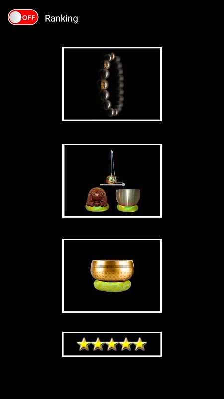 A collection of tools that facilitate prayers in rituals or chanting sutras and mantras. Including prayer beads (mala beads), a wooden fish (Chinese temple block, Mokugyo fish drum) and standing bells.