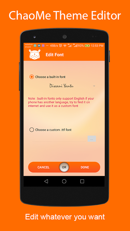 ChaoMe Theme Editor is the most powerful theme editor for ChaoMe phones with its simple and awesome UI and its wide set of options to help you customizing your phone easily. It's fully free and available to everyone. You can pick, edit and save your theme quite fast. Never hesitate to download it.