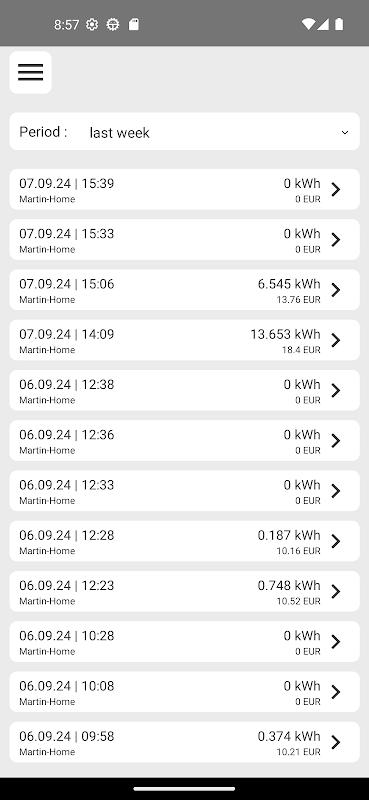 Analogous to the LichtBlick UserPortal, you have direct access to your charging history within the app and can thus conveniently track where and when you have charged and purchased energy at what amounts.