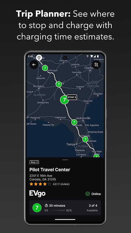 - Charging times for every stop are estimated to help you plan your time better