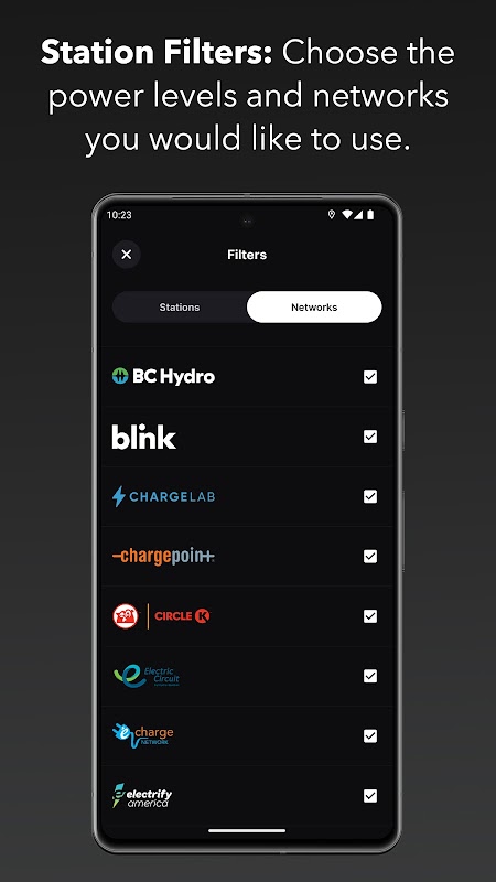 - Select "All Stations" on planned trips to view every charging option along your route